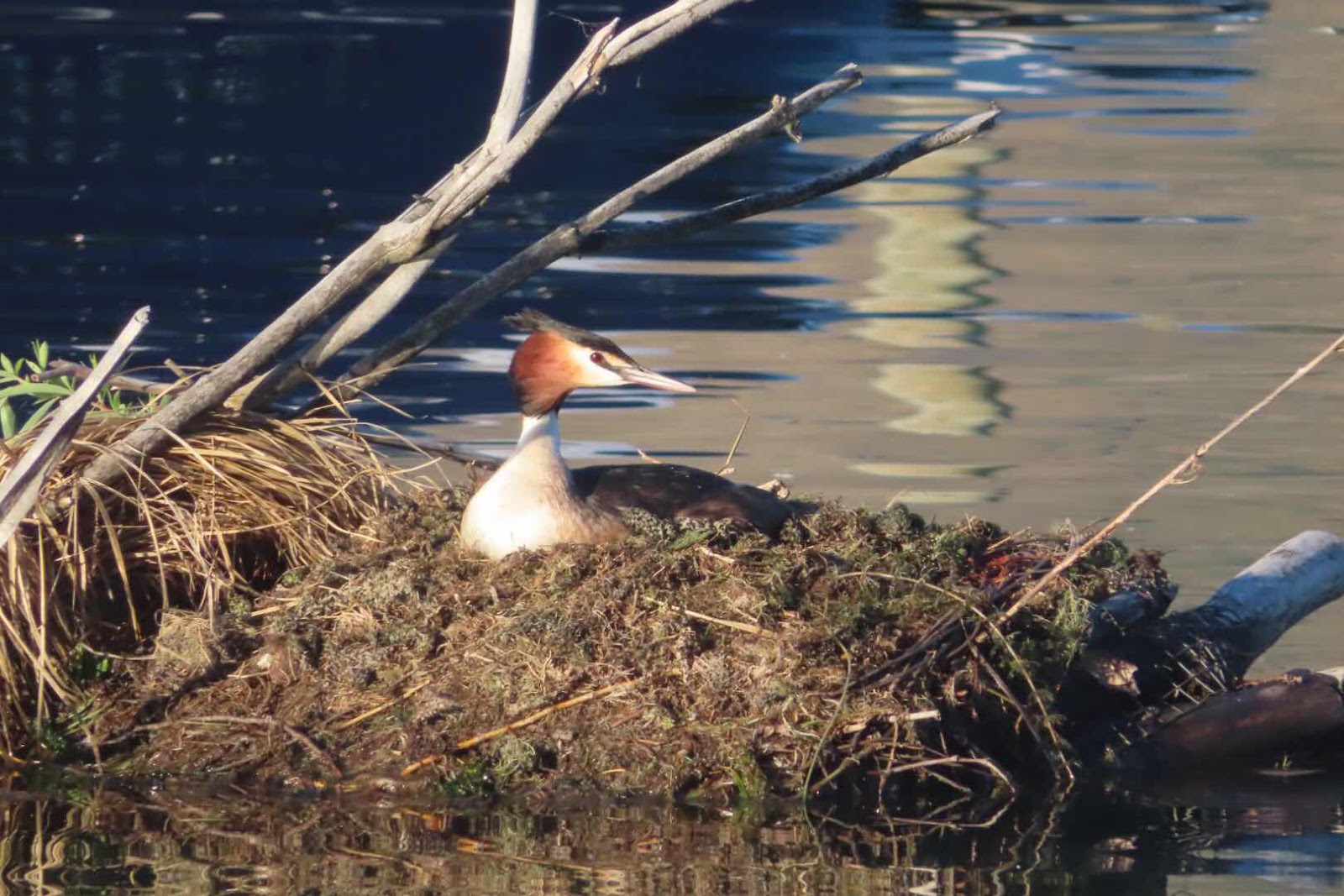 About one week later these hatched and was reported in the Press of an increase of 14 Great Grebes chicks.
